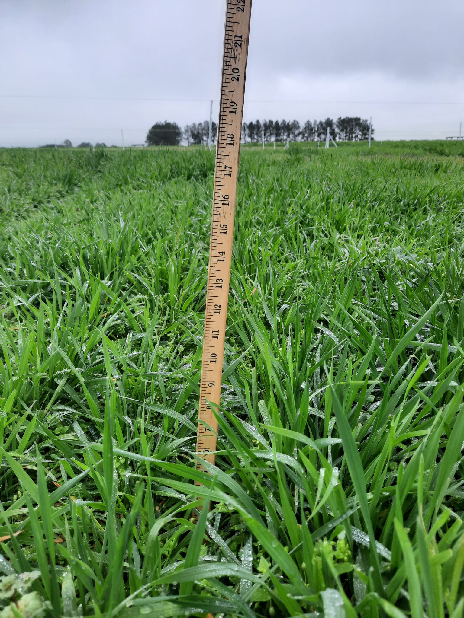 Measuring canopy height with a pasture ruler (figure 2) can give you an estimate of the pounds of grazeable forage mass per inch of standing forage in the field (table 1). However, this measurement alone does not consider canopy density, which can represent an issue in terms of the accuracy of the estimate.
