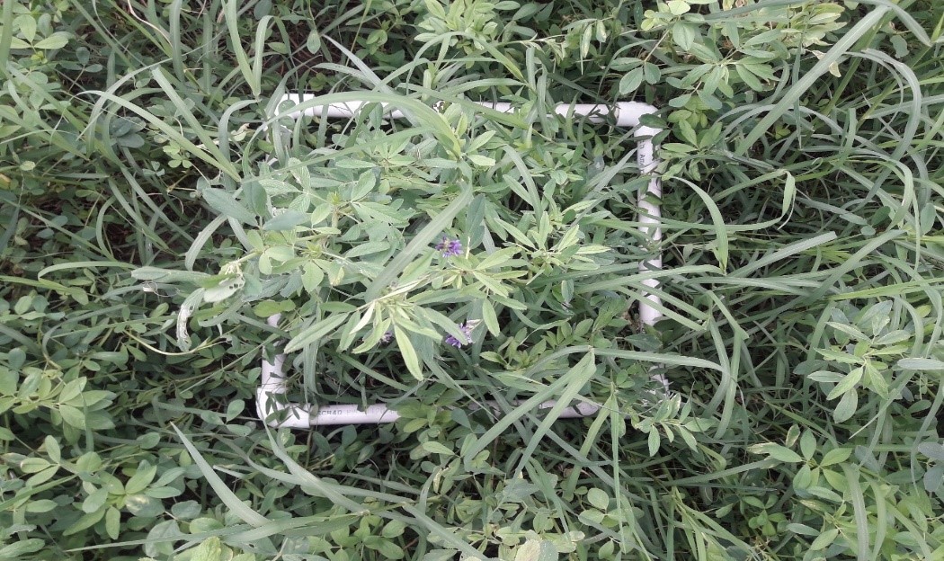In grazing systems, a general rule of thumb is to “take half, leave half” of the forage available. Properly estimating forage production can optimize forage utilization while accounting for plant and animal requirements. Experienced forage producers benefit from improved grazing management techniques because they maintain pasture productivity and persistence while supporting animal nutritional requirements and production goals. To reach this goal, we must address the question of How much forage do I have in my pasture? at a given time. Forage mass can be measured by the following methods: