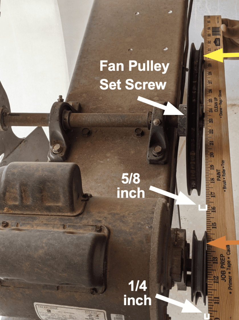 - Figure 7. Yardstick method used on a fan where the pulleys are out of alignment (approximately 5/8 inch).