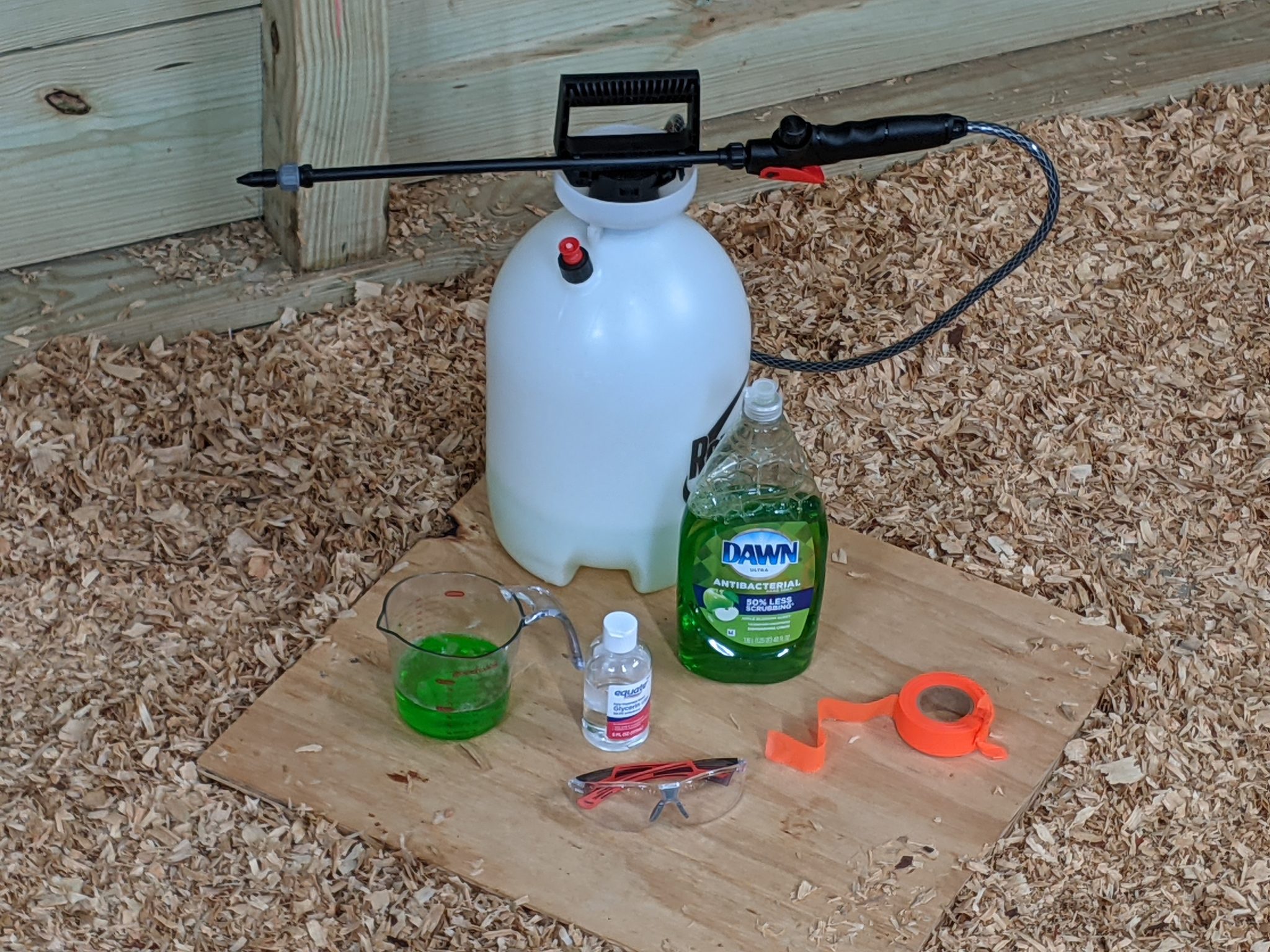 - Hand-pump sprayer (1 to 2 gallons) to efficiently spray the soap solution