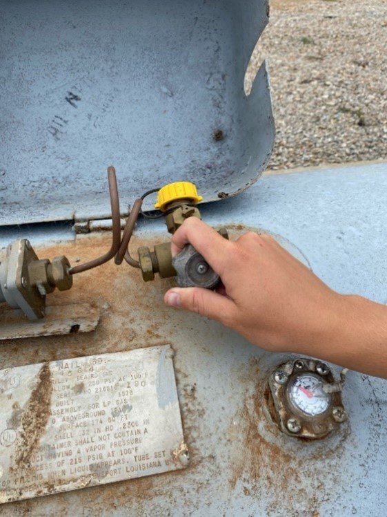 - Figure 5a. Open the shutoff valve on a propane tank with your hand.