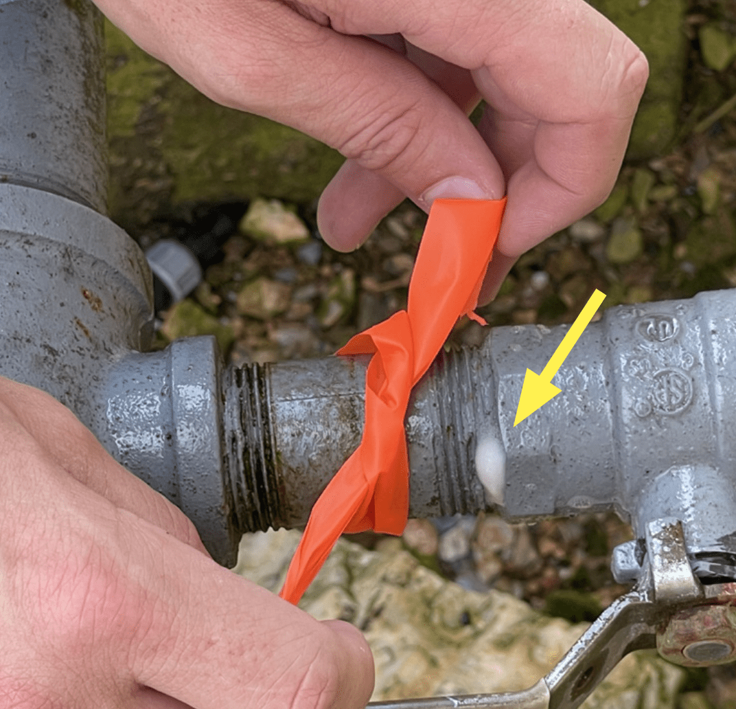 4. When a leak is found, mark the leak with flagging tape (figure 9). If both sides of a coupling leak, mark each side. Marking leaks allows for the severity to be checked and monitored the following year.