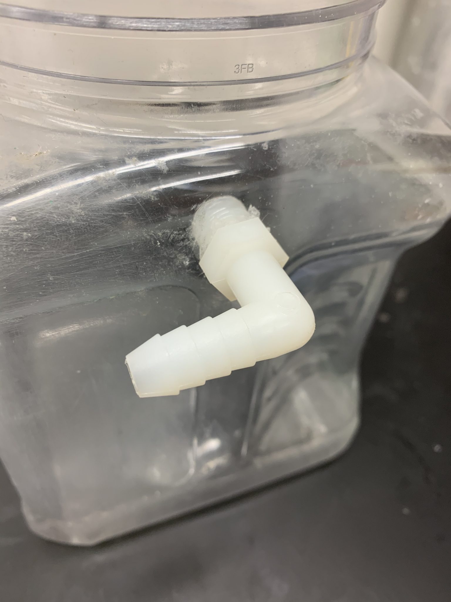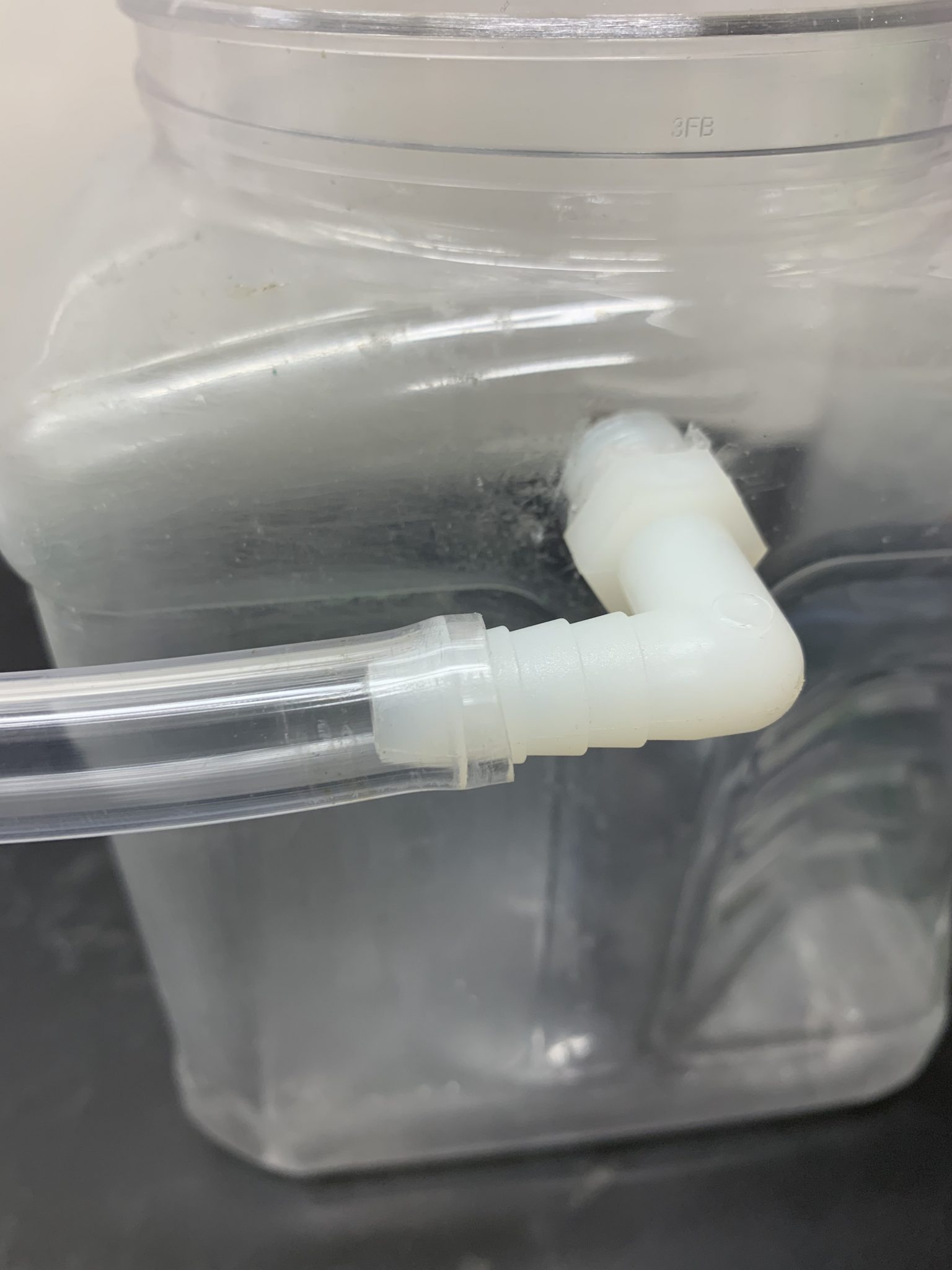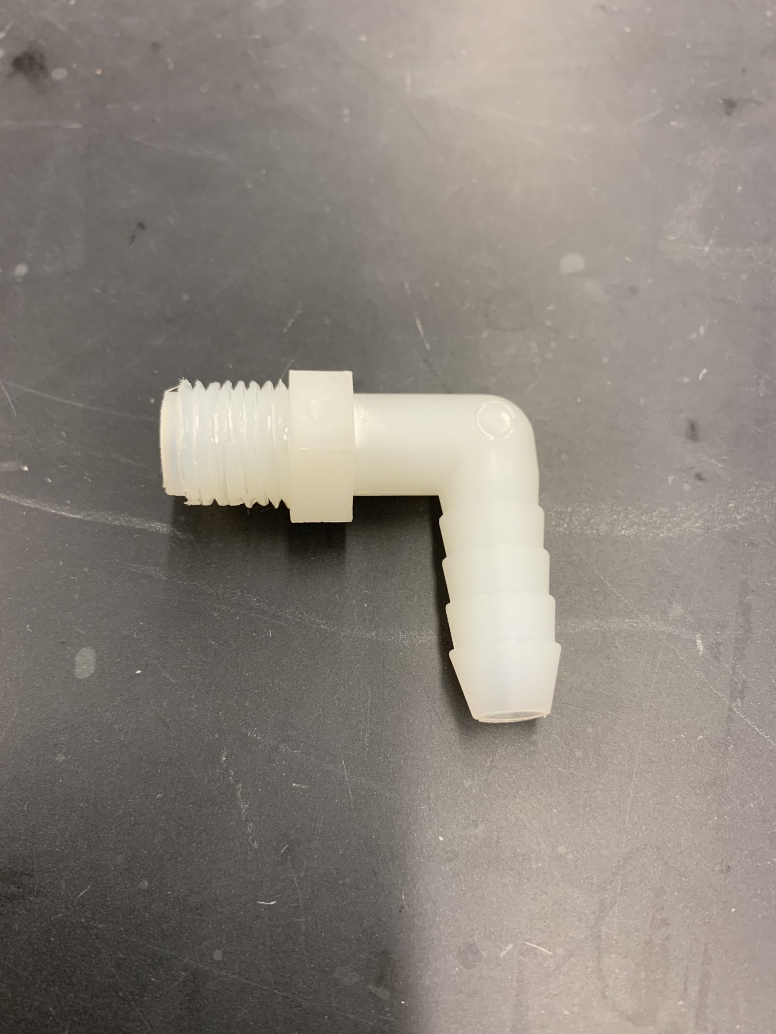 - Figure 8. Nylon barbed elbow inserted into the hole on the container