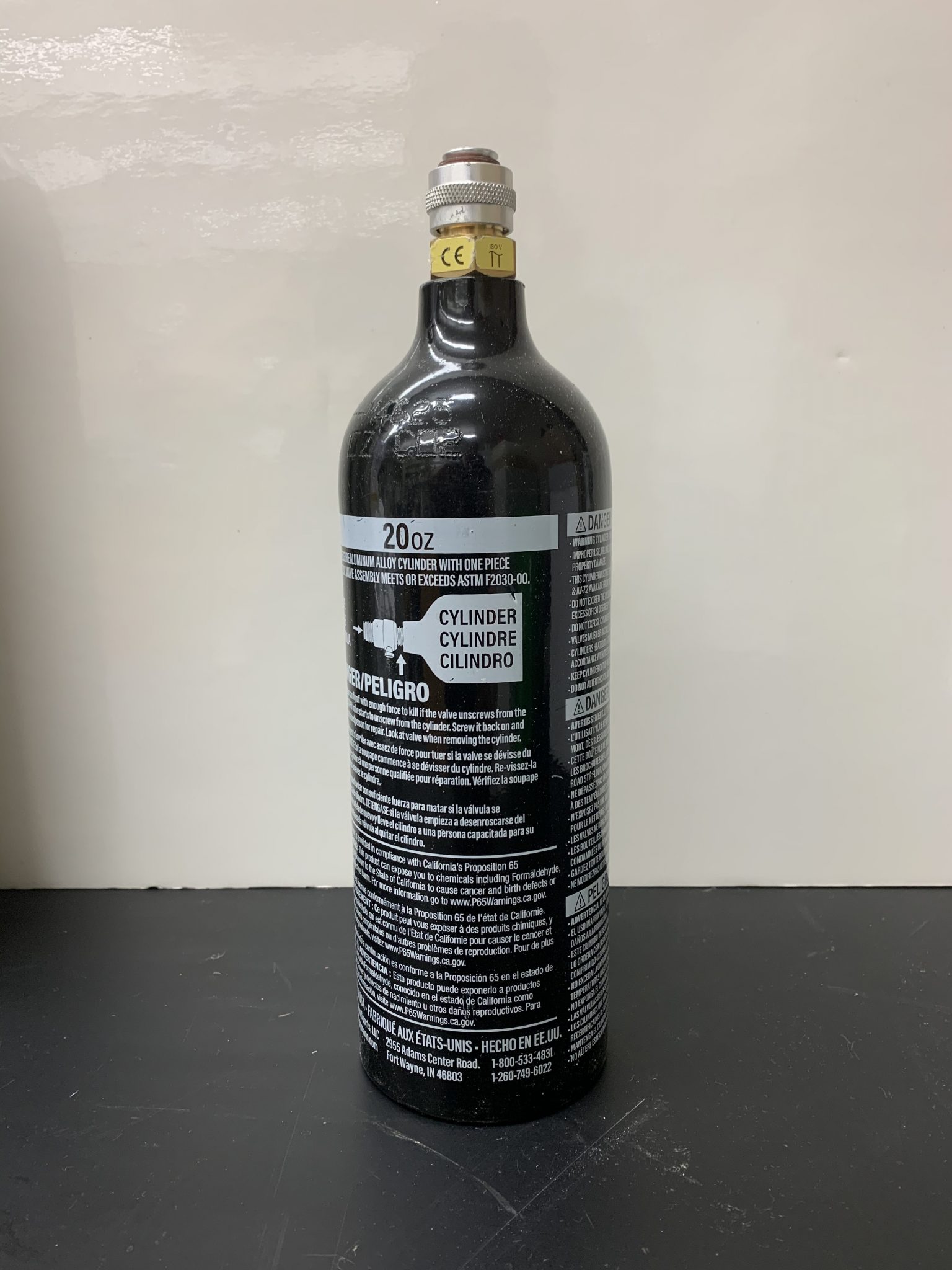 - Begin by attaching the regulator to the CO2 gas cylinder (figure 1). If a 20-ounce gas cylinder is used, a paintball thread to CGA 320 thread adapter may be needed (figure 2).
