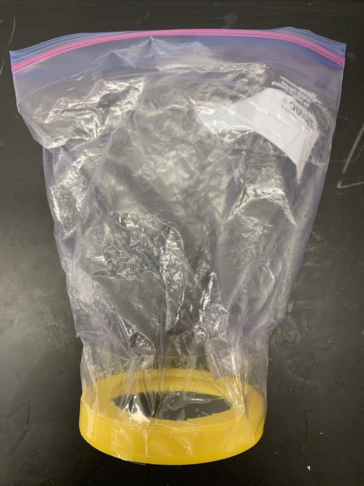 - Figure 5. Gallon-sized bag secured to the lid with tape