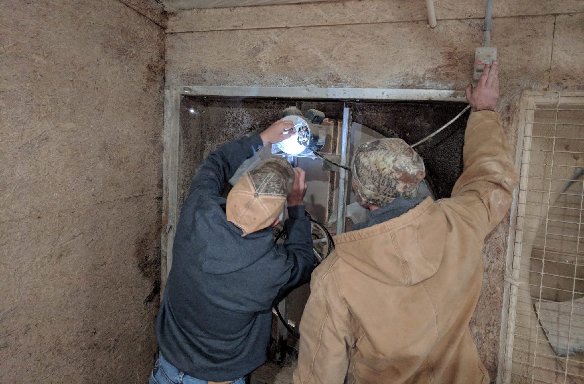 - Figure 1. A broiler producer replacing a 1 horsepower (hp) electric motor on a tunnel ventilation fan
