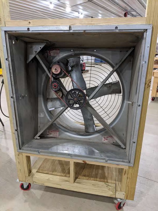 - Figure 2. A 36-inch galvanized fan with cone demonstration unit. The fan has a 1⁄2 hp motor with a switch on the start capacitor to demonstrate a “working” capacitor and a “dead” capacitor. Fan shutters removed for clarity.