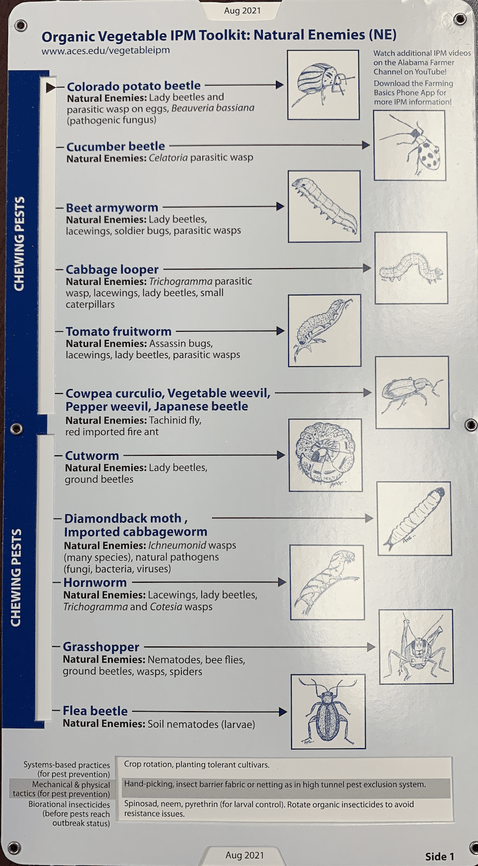 The Organic Vegetable IPM Toolkit slide chart, a critical tool for small producers and beginning farmers, provides information about organic and sustainable pest management strategies for more than 20 critical insect pest species.