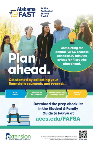 These posters are a part of the Alabama FAST: FAFSA Application Survival Toolkit. For more information, visit aces.edu/FAFSA.
