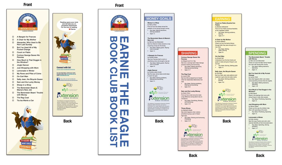 The Earnie the Eagle Money as You Grow Book Club is adapted from the Consumer Financial Protection Bureau and supported by a grant from the Tombigee RC&D Council. The Alabama Cooperative Extension System Human Sciences team provides content support and a kiosk for youth financial literacy at the Hale County Library in Greensboro, Alabama.
