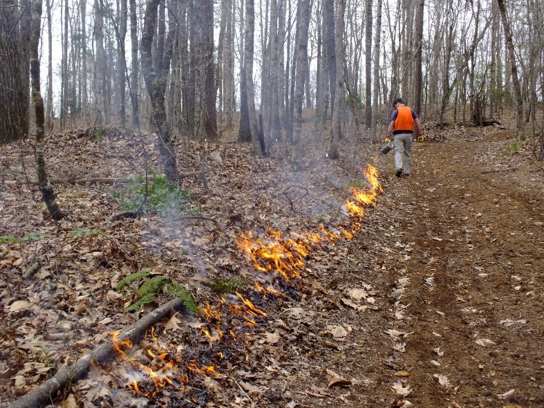 - Figure 2. A good fire line is needed to conduct a prescribed fire (right side of photo). The width of the fire line can be as narrow as a plowed line or as wide as several feet.