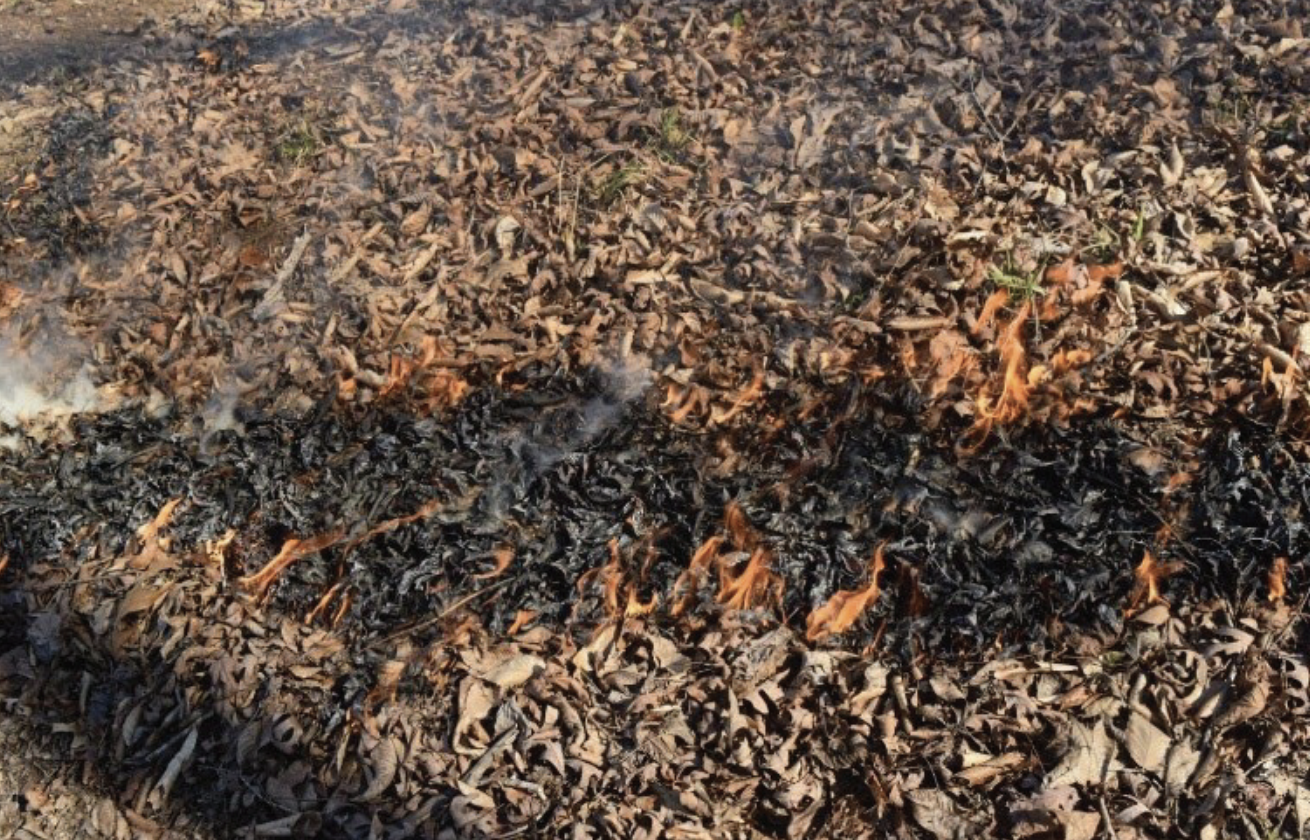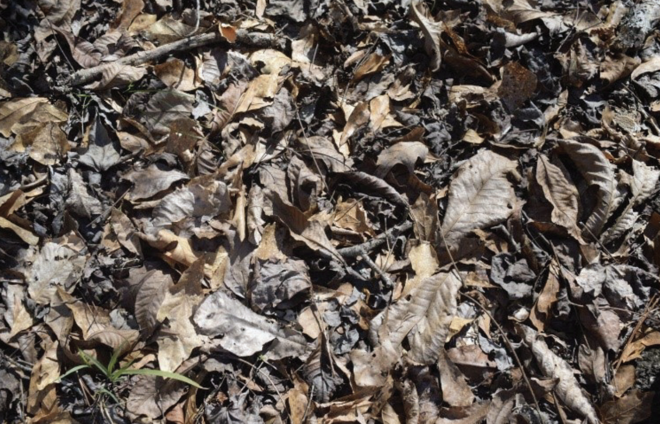 - Figure 3. An example of loosely compacted fuels. The dried hardwood leaves often curl up or have rough margins that create a good amount of air space between the leaves..