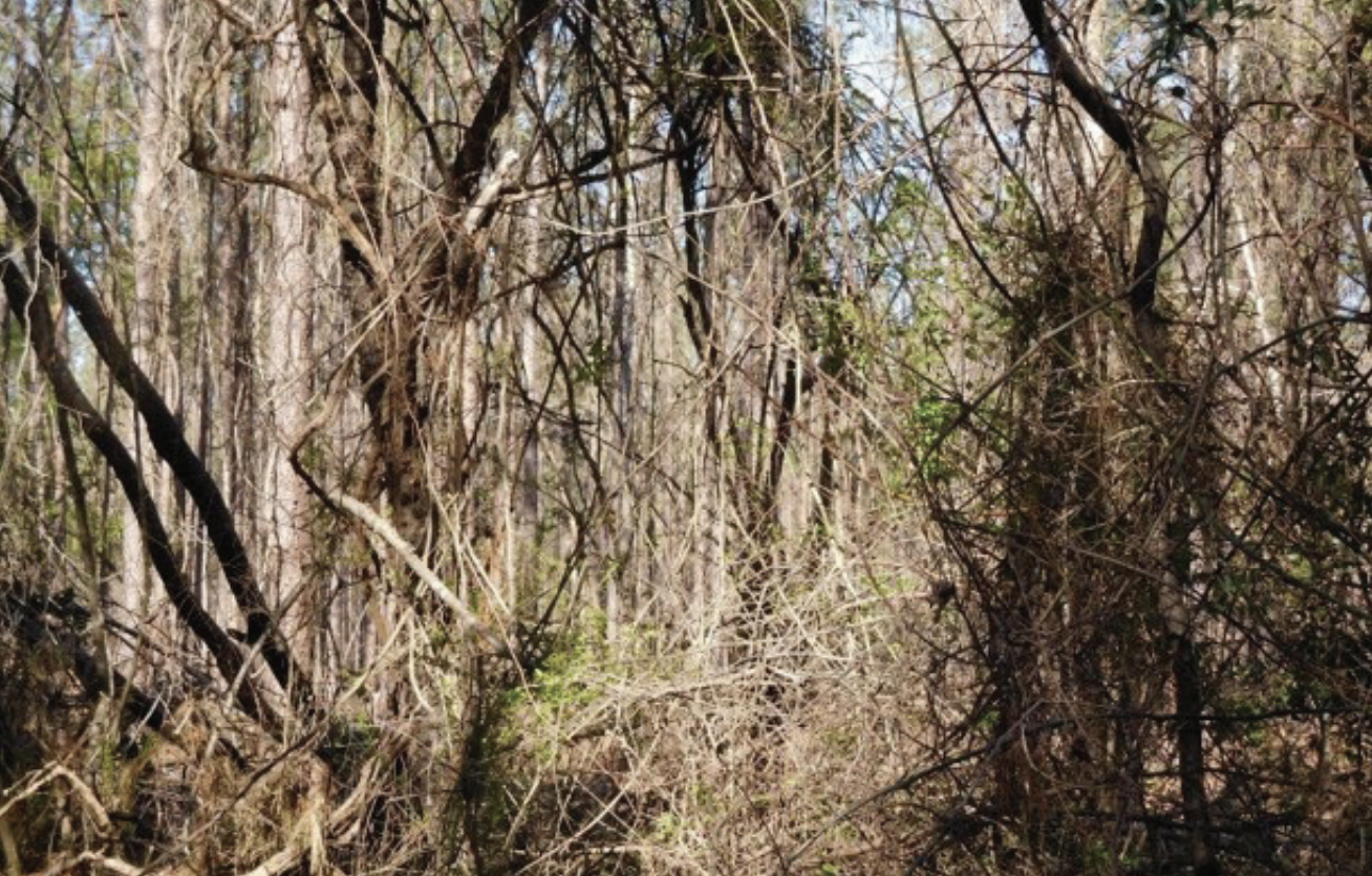 - Figure 7a. This illustrates a potential fuel ladder, where vines are growing up trees and into the forest canopy