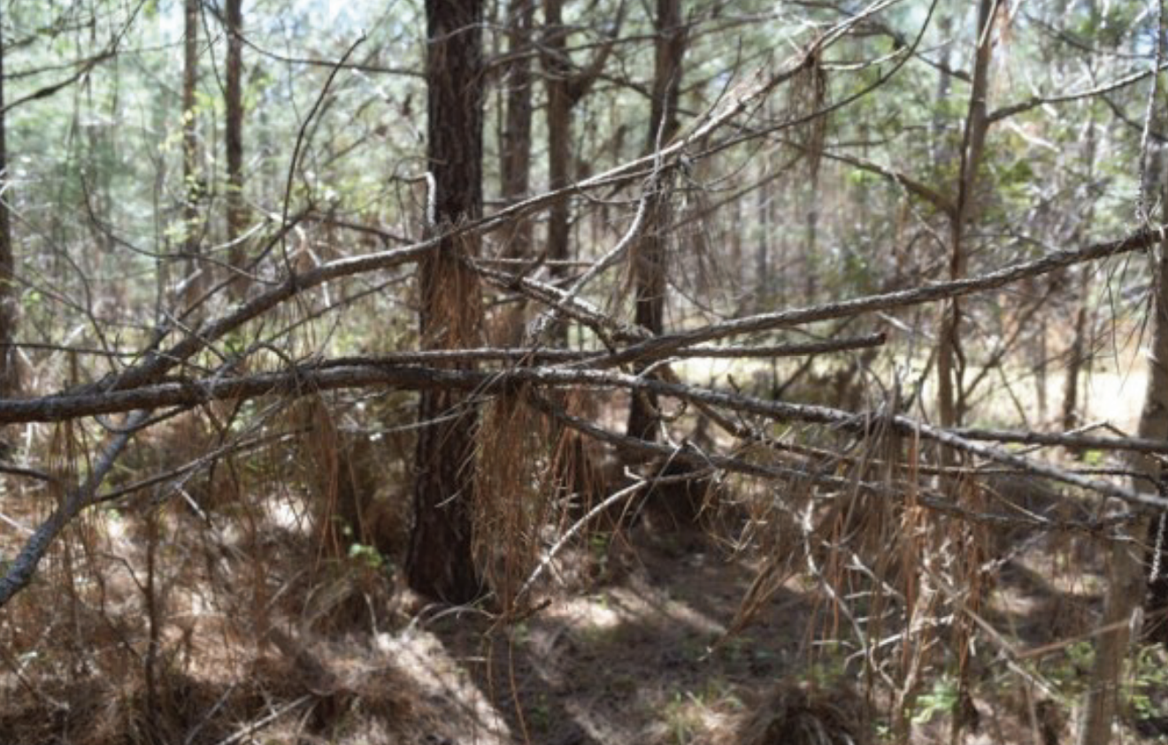In a mature pine plantation, the pine needle layer is matted and mostly flat, with the exception of the top layer(figure 5). Due to rosin in pine needles, the needles willignite with little heat and carry fires of greater intensity (figure 6).
