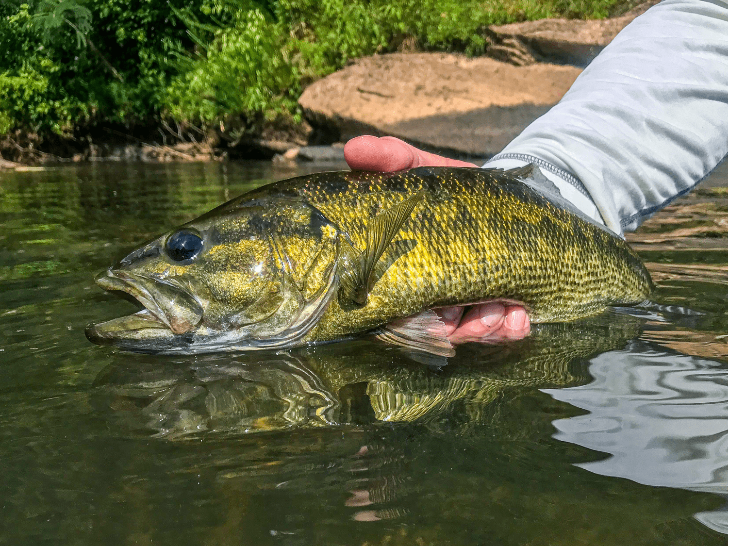 Fish species found in the Tallapoosa Basin include the lipstick darter, speckled darter, Tallapoosa darter, stippled studfish, Tallapoosa shiner, largemouth bass, redeye bass, Alabama spotted bass, etc. The beautiful Tallapoosa bass is an Alabama endemic species that prefers rocky habitat with flowing water. They are typically between 5 and 16 inches long, slender, and known by anglers to be an especially hard-fighting fish.