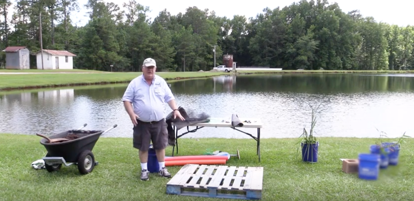 Fish are attracted to many different types of structure in ponds including rock piles, tree tops, and construction debris. In this video, Rusty Wright, an Alabama Extension fisheries specialist, and students from the Auburn University School of Fisheries demonstrate how to build a floating island with living wetland plants using a few simple materials and tools.