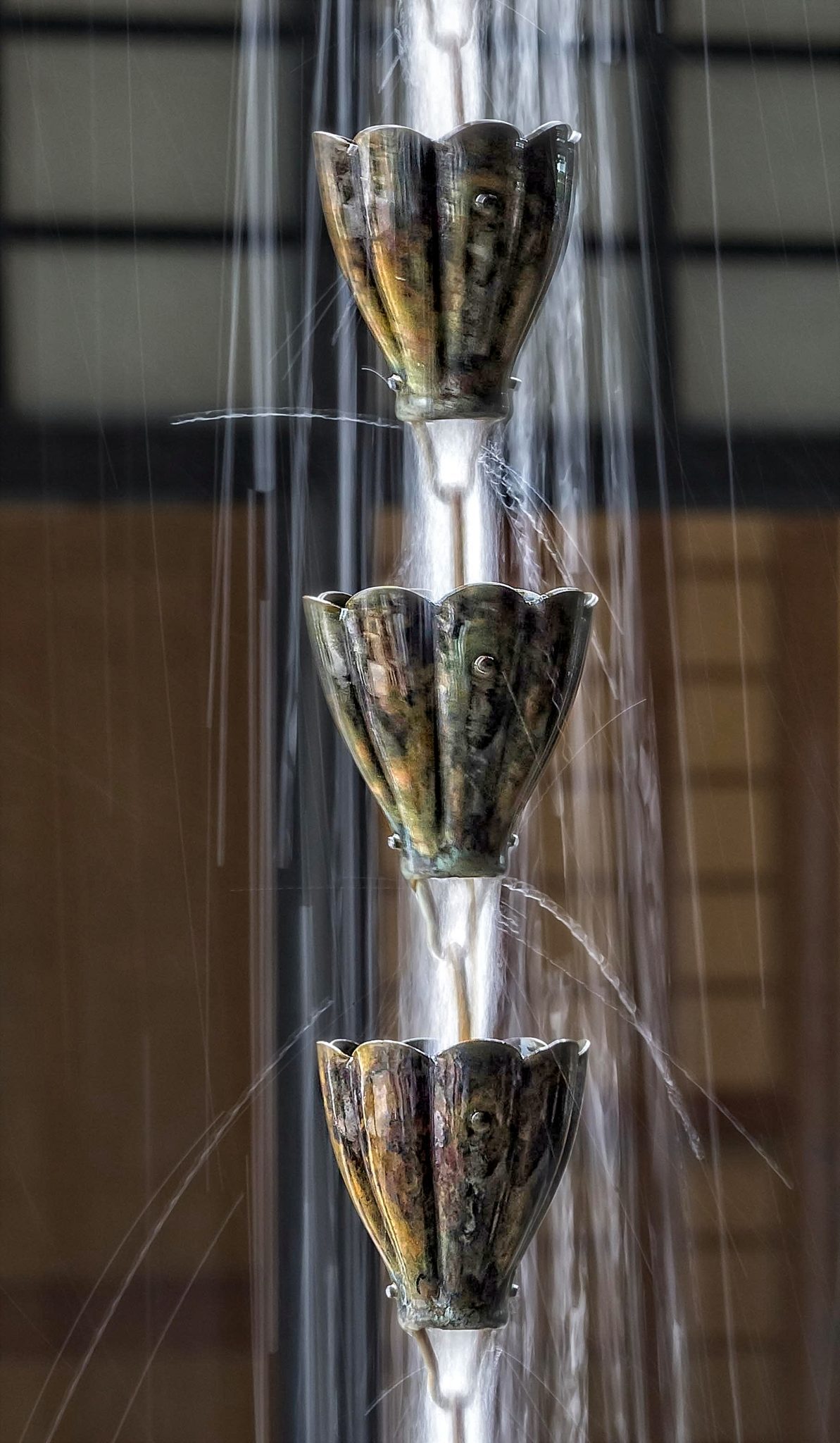are attractive ways to direct rainwater but can be expensive. Chains available at the local hardware store can be as effective and less costly, but they have a different aesthetic. We suggest finding alternatives to copper as a means to transport rainwater since some research suggests that trace copper in water can have a negative impact on fish.11