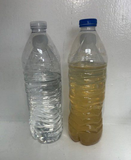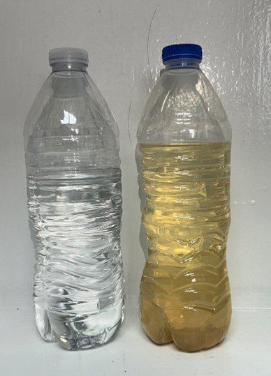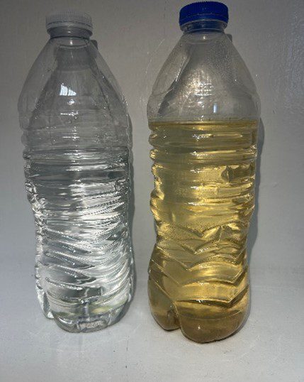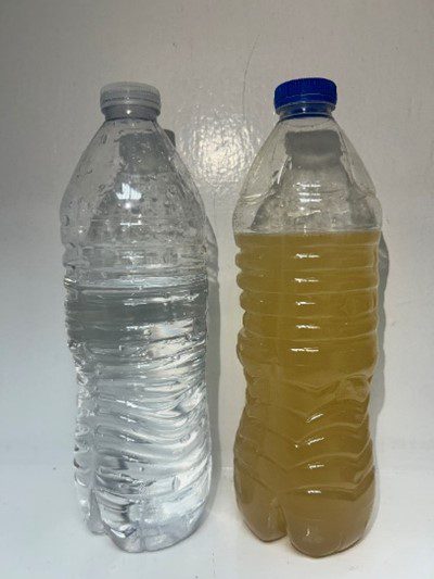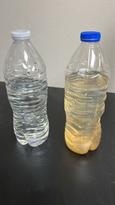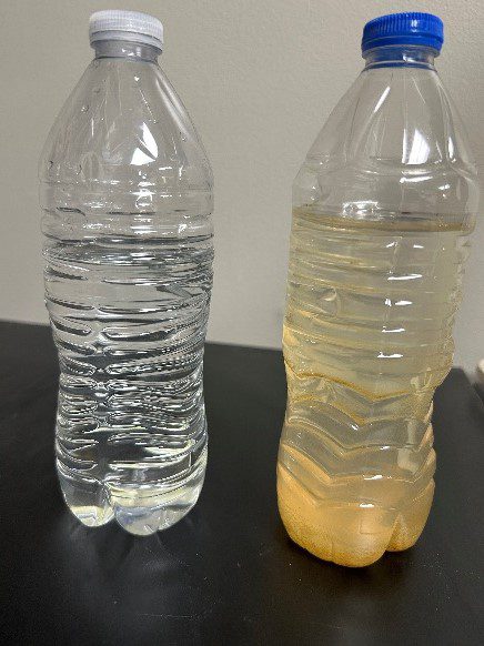 If the source of the turbidity is eliminated and the cost of treatment deemed too high, the particles will eventually settle out; however, that is in a perfect world with no wind to stir or other factors that increase turbidity. Remember that the water sample pictures in this document were taken with the bottle completely undisturbed (no wind, no rain, no cattle, no boats, etc.) in a completely sealed bottle, and months later, the water was still stained from the presence of clay particles. In your pond, the time to settle clay turbidity will likely be much longer if you do not apply corrective treatments.