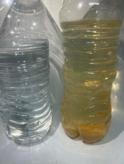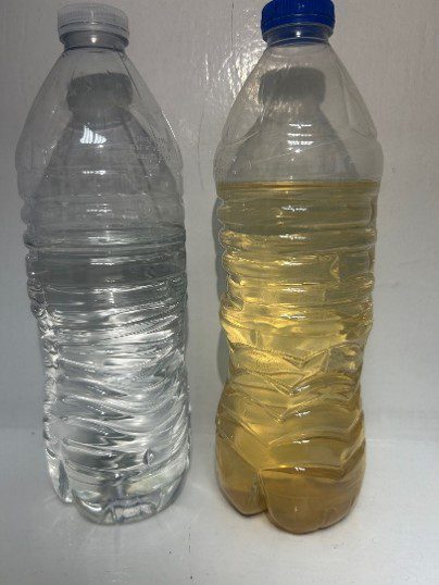 - Figure 11. The same water sample as above, re-agitated and treated with alum; picture taken 1 hour and 30 minutes after treatment.
