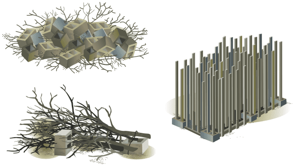 Pallet fish attractor (top picture) and sea gravel (bottom picture).