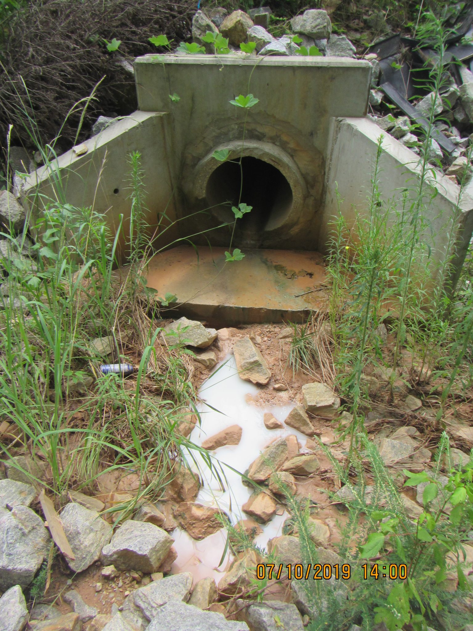 - Figure 9. Paint discharging from outfall. (Photo credit: Dusty Kimbrow, Water Resource Management, Watershed Program Coordinator)