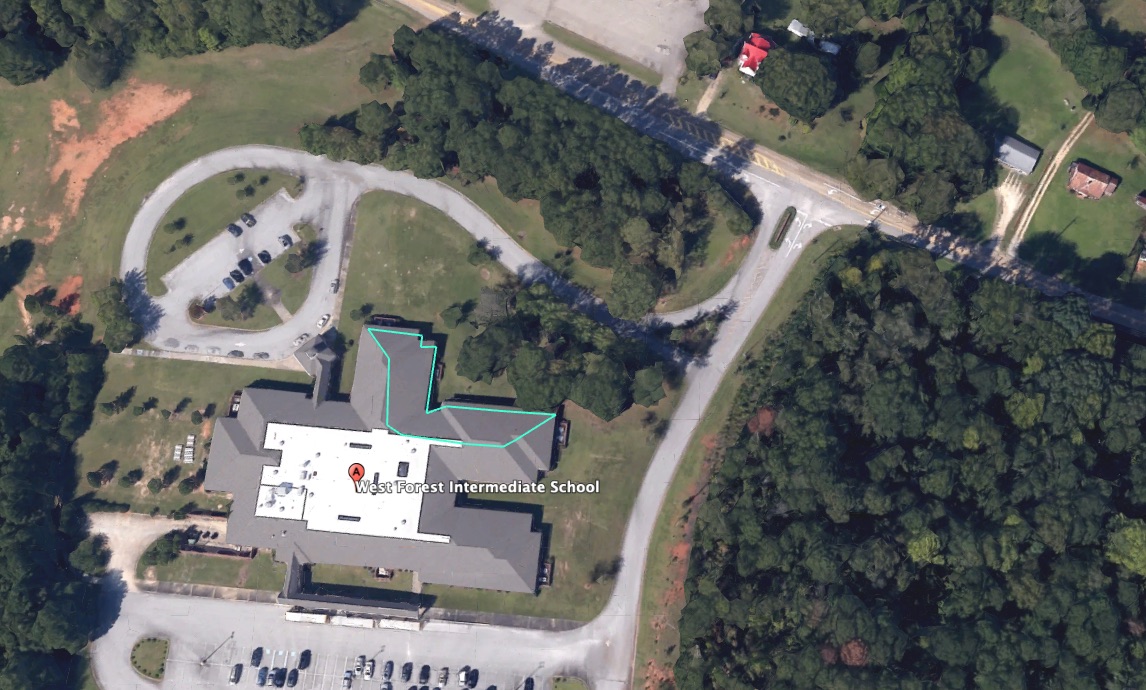 Example: The rooftop draining to a proposed rain garden at West Forest Intermediate School in Opelika, Alabama, is 7,881 square feet. We can calculate the size that our rain garden should be by dividing the area by 20 for a 6-inch ponding depth.
