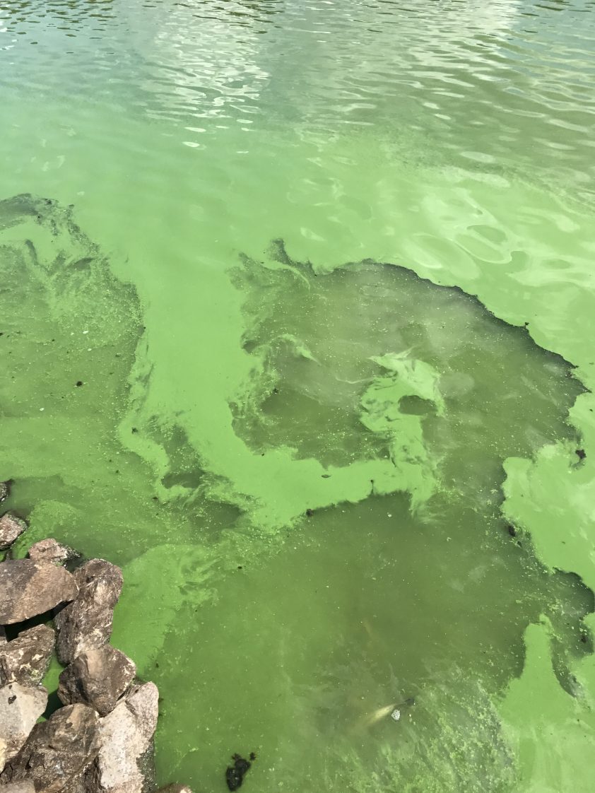 - Figure 4b. The growth in these ponds warrants concern and testing for harmful algae blooms (HABs). Any contact or use of this water should be discontinued pending test results.