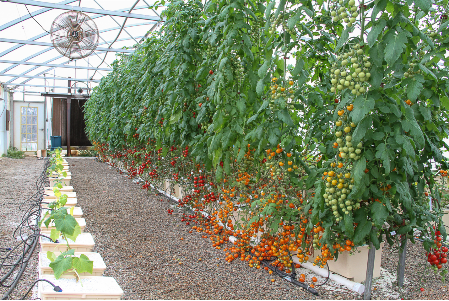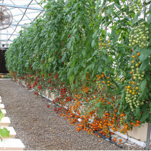 Fruiting crops, such as tomatoes, cucumbers, peppers, and strawberries, are grown in substrate systems to provide adequate root support. In a substrate-based system, water can be recirculated or pass through to drain after irrigating. These systems use drip irrigation, where water is applied directly to the roots on a set schedule according to plant need. It is unlikely that the irrigation water will come into contact with the produce grown in substrate-based systems, but drip emitters should be inspected periodically to ensure that there are no leaks which pose a food safety risk.