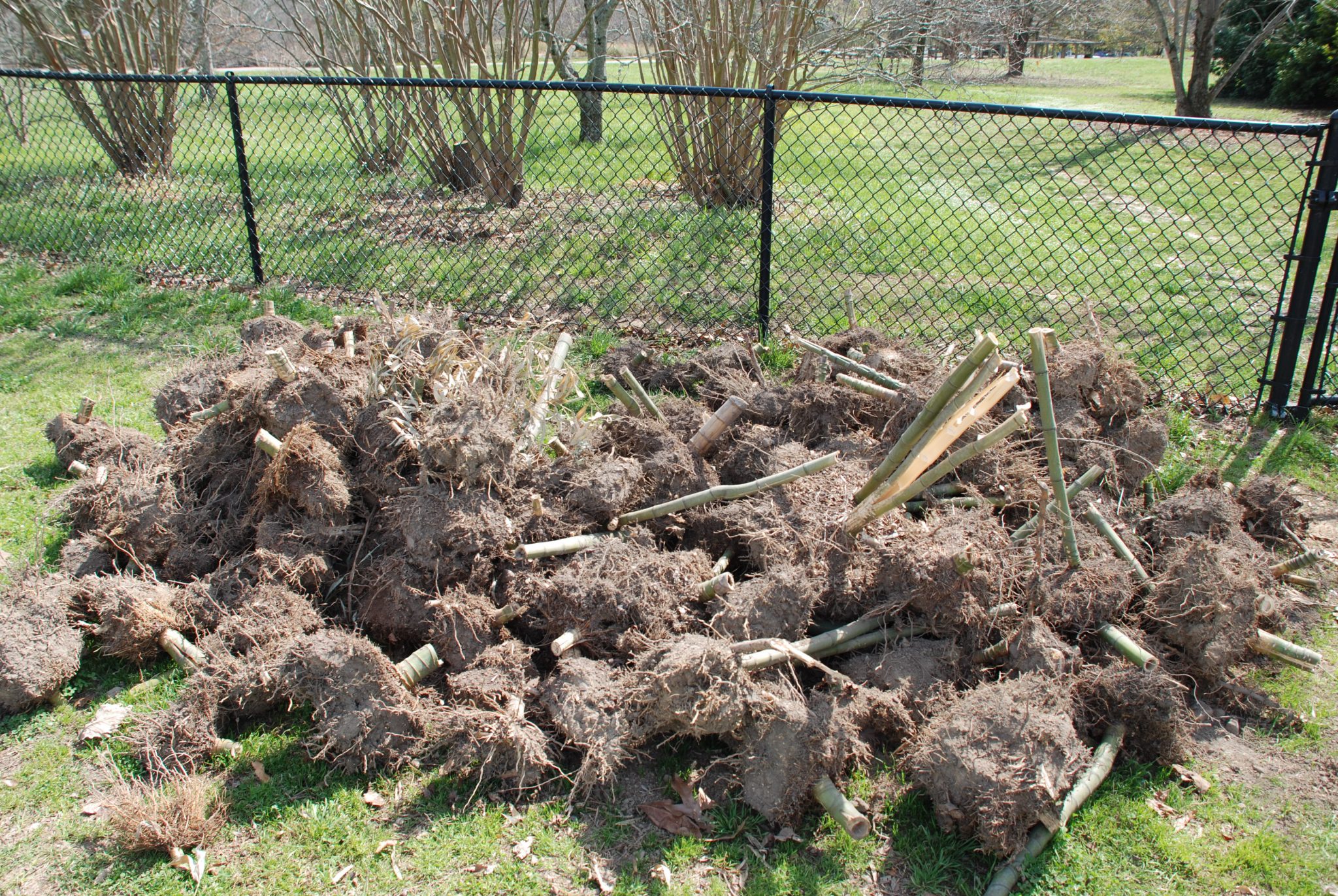 - Figure 5. A pile of excavated bamboo rhizomes. Most rhizomes are located within the top 12 inches of soil.