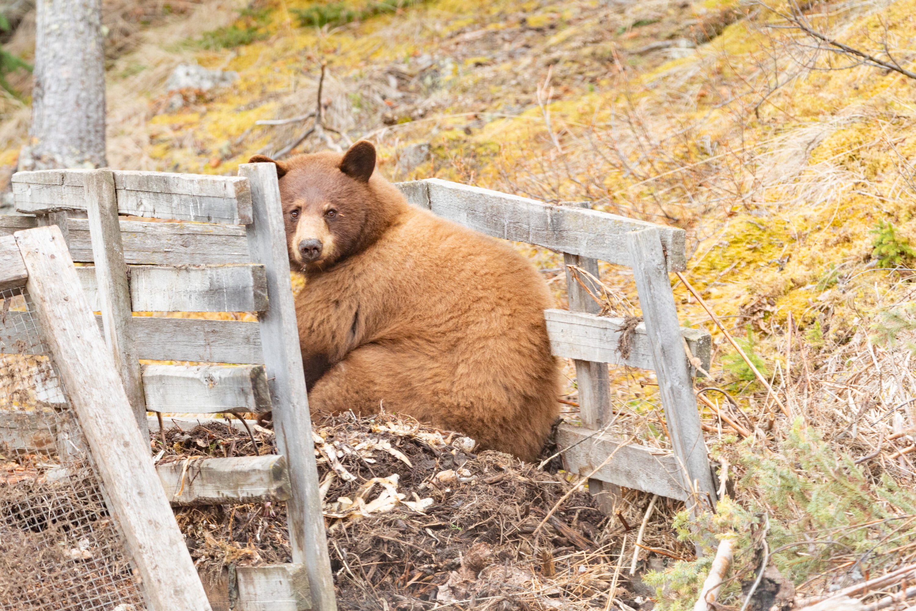 - Figure 8. Most any human food by-products are attractive to black bears, even garden compost piles like the one this bear is scavenging in.