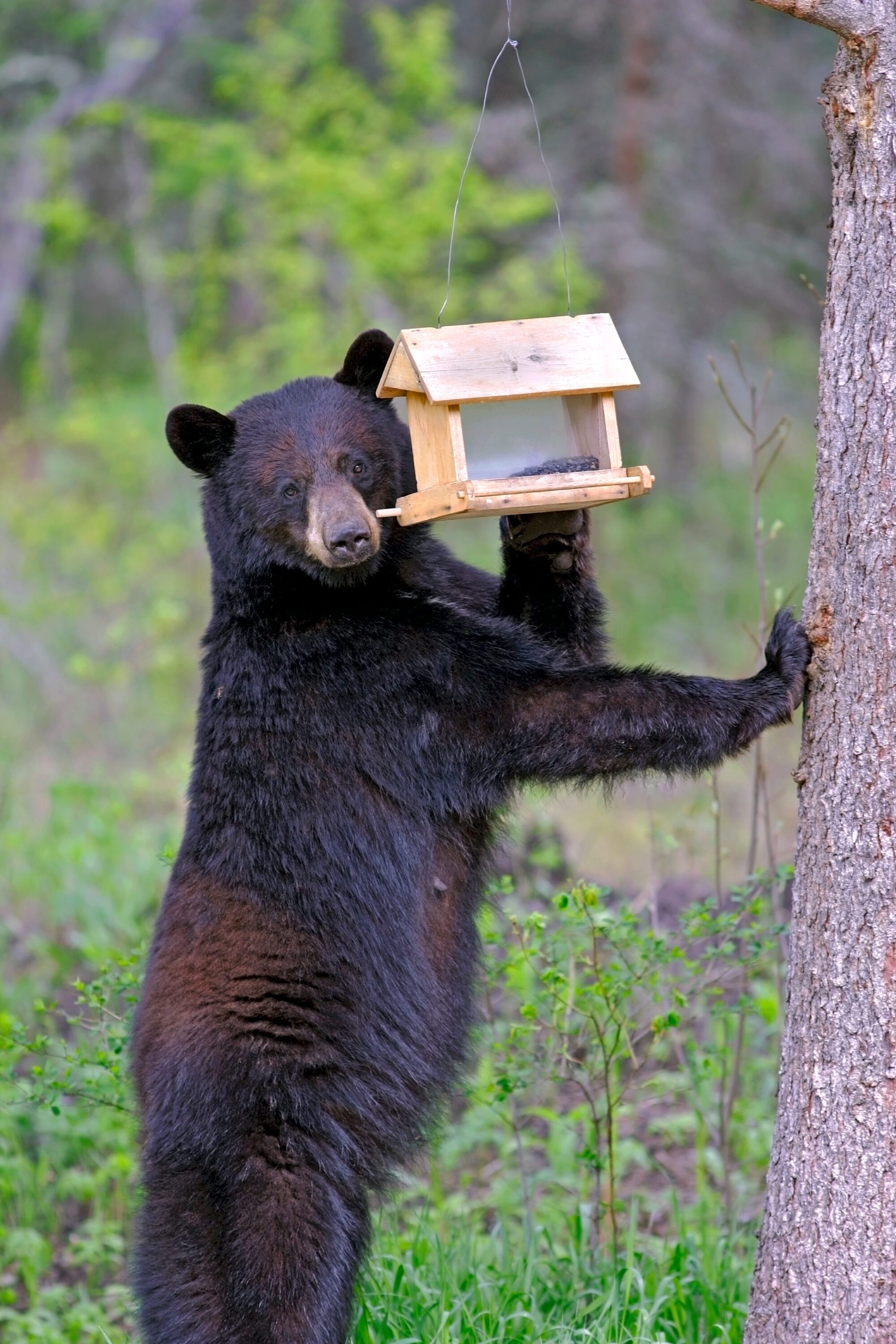 - Figure 7. Black bear reaching for a bird feeder to feed on sunflower seeds