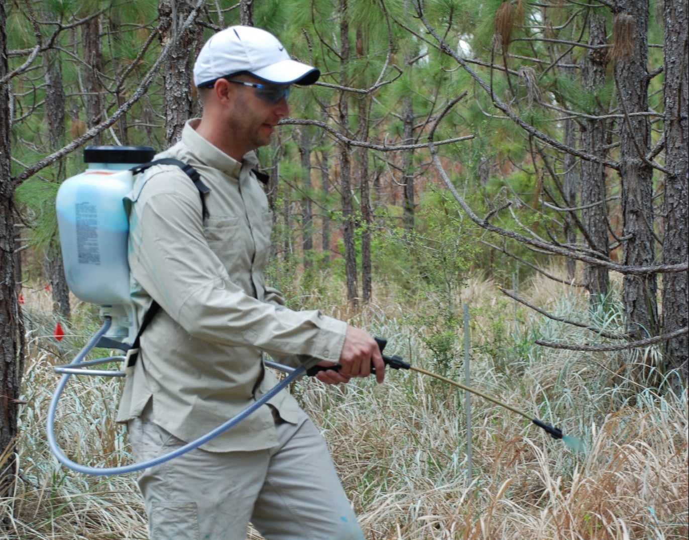 Two herbicides, glyphosate and imazapyr, are most effective for cogongrass management. However, they are generally situation specific and require multiple treatments for complete control. Glyphosate is the safest option when treating cogongrass around desirable trees, shrubs, or other vegetation but is less effective than imazapyr. Imazapyr is more effective than glyphosate but cannot be used near most desirable vegetation, unless severe injury or death of that vegetation can be tolerated. Some pines, including loblolly pine, are tolerant of imazapyr. Longleaf pine, however, is not tolerant of rates of imazapyr needed to control cogongrass. Since imazapyr is absorbed by plant roots in addition to foliage and root locations cannot be seen, unintended consequences can result.