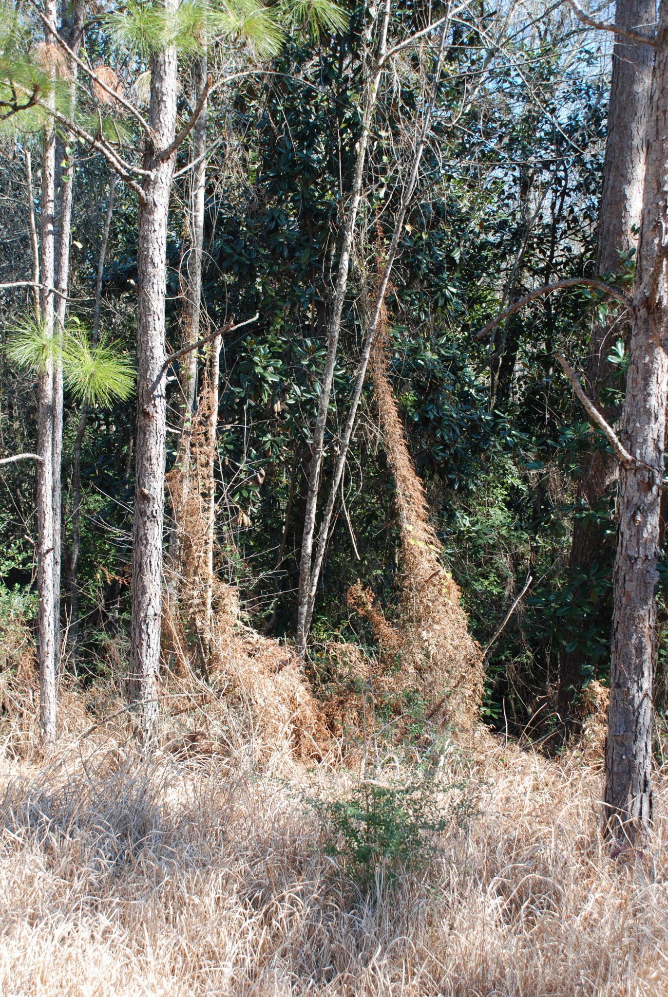 - Figure 9. Japanese climbing ferns growing over and through longleaf pine sapling.