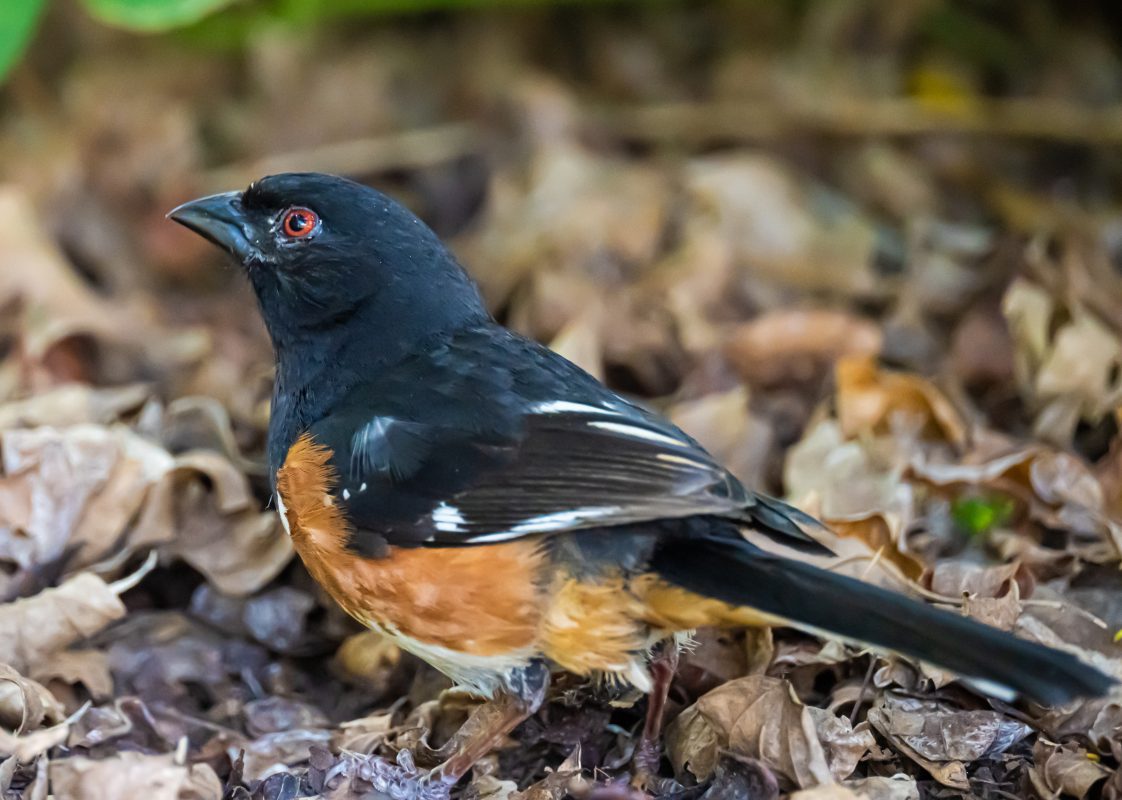 Many bird species—such as the eastern towhee (Pipilo erythrophthalmus) and ovenbird (Seiurus aurocapilla)—forage in leaf litter. Amphibians and reptiles—such as salamanders and eastern box turtles (Terrapene Carolina) will hibernate under leaf litter. Some solitary ground-roosting bat species, such as the eastern red bat (Lasiurus borealis), may also temporarily use leaf litter to keep warm in the winter, but it is unlikely to encounter these bats outside of forested settings.
