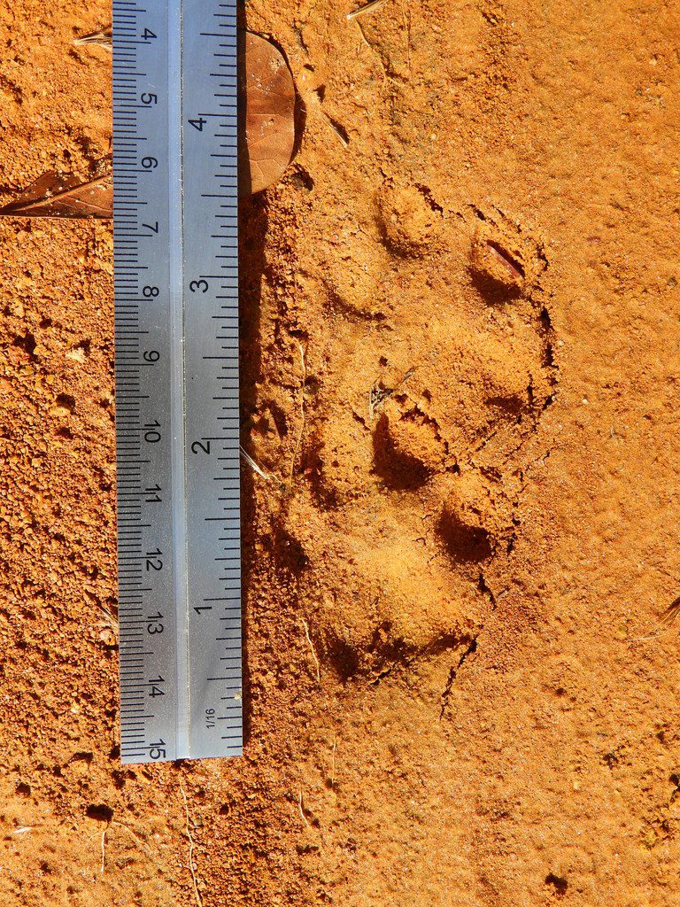 In the absence of the animal itself, tracks can be used to identify a bobcat. Like domestic cats and cougars, tracks show four toes on both the front and back feet. All cats in Alabama have retractable claws and, unlike other carnivores in the state, do not make claw marks with their paw prints. Although bobcat, cougar, and domestic cat tracks look similar, mature individuals can be distinguished by track size. Generally, domestic cats will have paw prints 1″×1″, bobcats 2”×2”, and cougars 3”×3”. In other words, a 2” track in Alabama would most likely be a bobcat (figure 3).