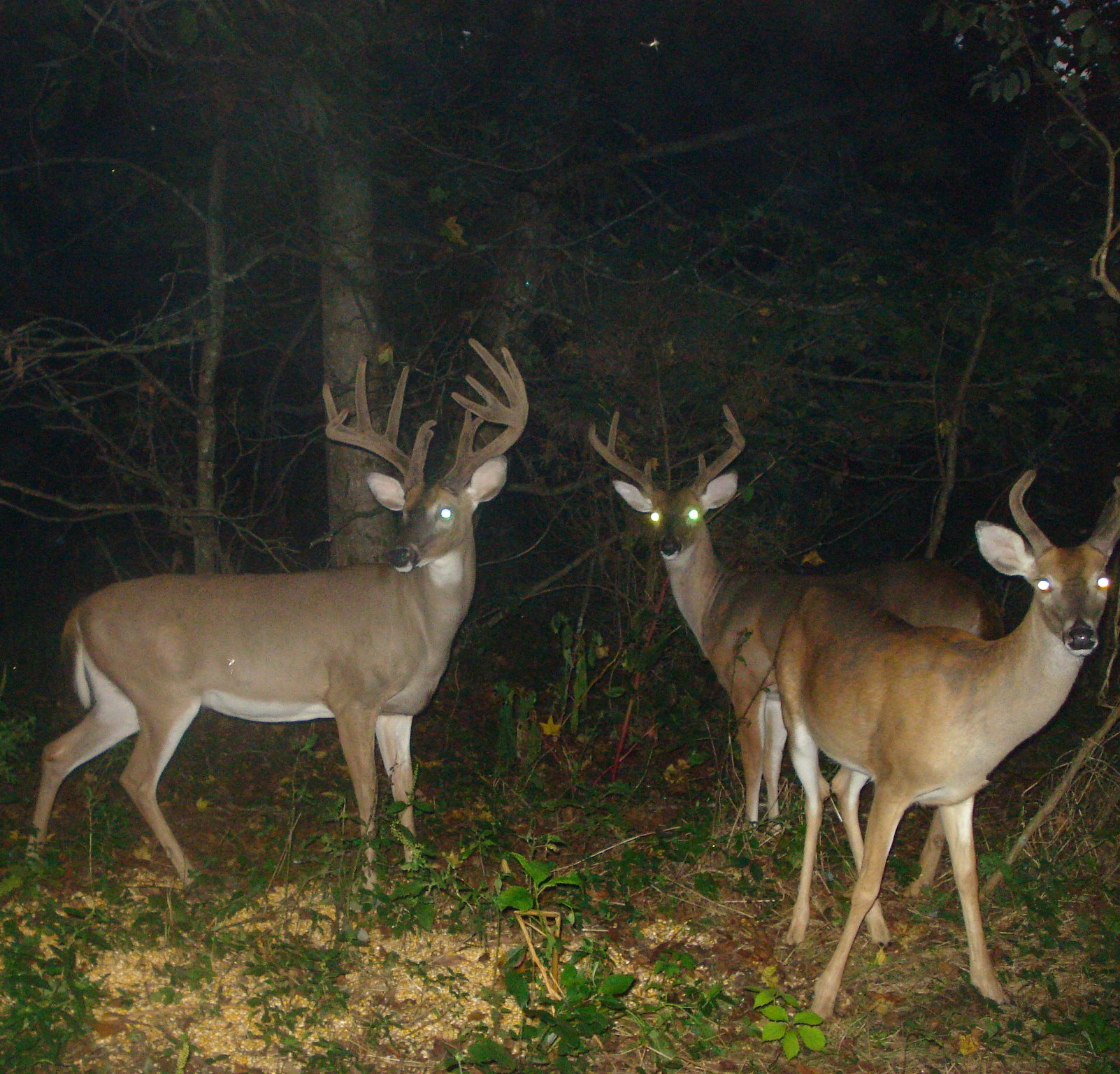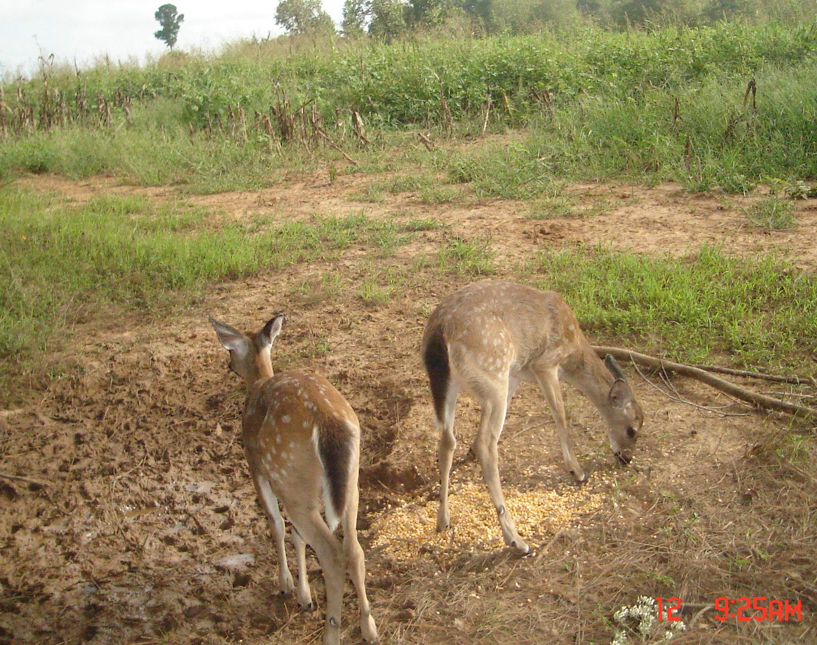 A camera survey is a management technique that allows landowners and hunters to gather information about the local deer herd. A camera survey consists of a game camera—preferably multiple game cameras—placed in the field to take pictures of deer. Bait, usually corn, is used to attract animals within the field of view of the camera. Most game cameras have an infrared trigger that detects animals and causes cameras to capture an image when deer are detected in the field of view. After a selected period of time, pictures are gathered from the cameras and printed or downloaded to a computer for viewing, analysis, and storage.