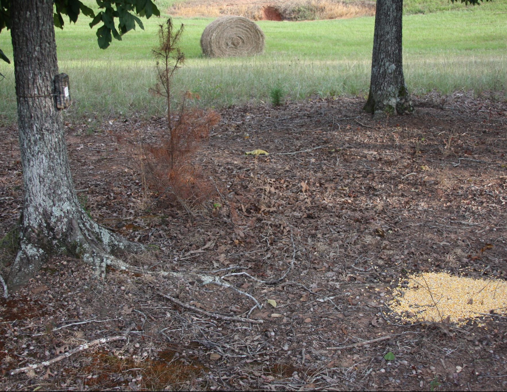 Baiting is a successful and easy way to improve success of camera surveys. However, baiting must be done legally and properly. Always contact your local wildlife law enforcement agency before using bait. These agencies can provide information on legal baiting seasons, types and amounts of bait that can be used, and other information concerning the use of baits. If baiting is illegal or is not a preferred option, cameras can be placed around food plots and natural food sources such as mast-producing trees.