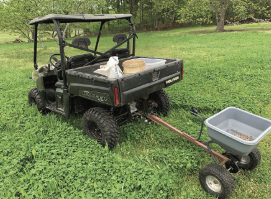 - Figure 6a. ATVs and UTVs paired with downsized implements can work well when preparing and amending small or remote plots. A small disc can easily incorporate the pelletized lime and fertilizers that a tow behind spreader distributes. Ag lime is best applied with a tow behind chain-driven or drop spreader as it is too dense for light duty, drive agitated spreaders to distribute.