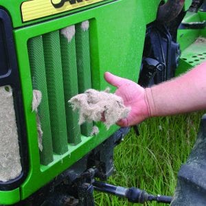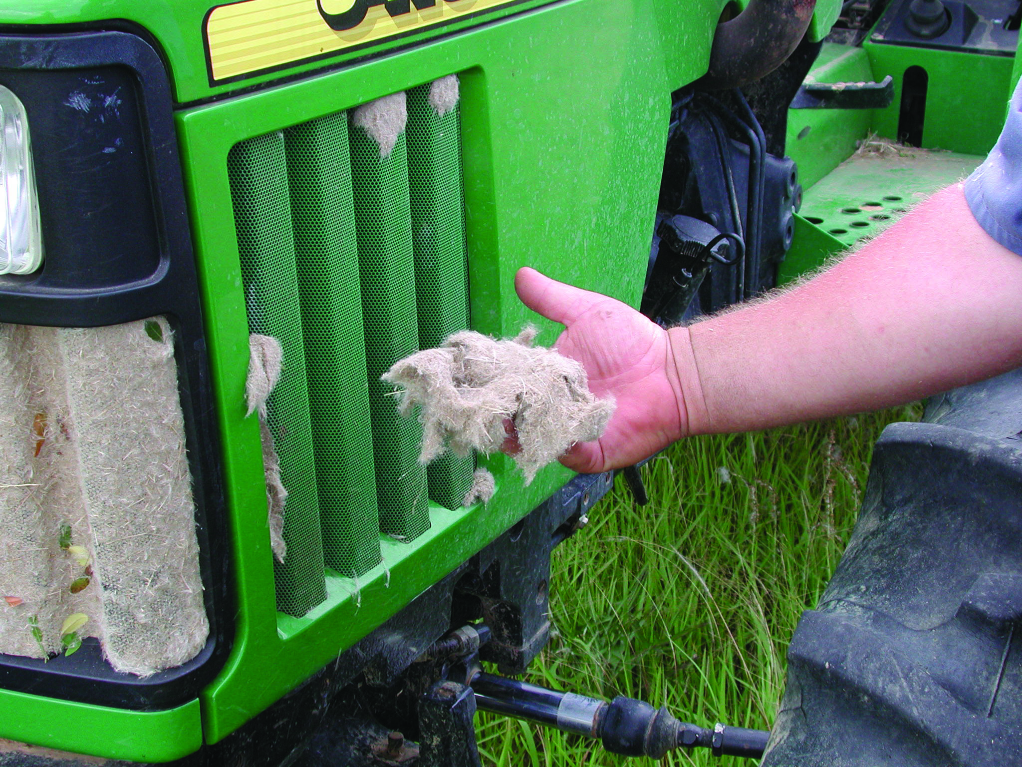- Figure 1. Cogongrass seeds hitchhiking on a tractor. Avoid mowing or working in cogongrass while it is blooming. (Photo credit: W. Faircloth,USDA ARS, Bugwood.org.)