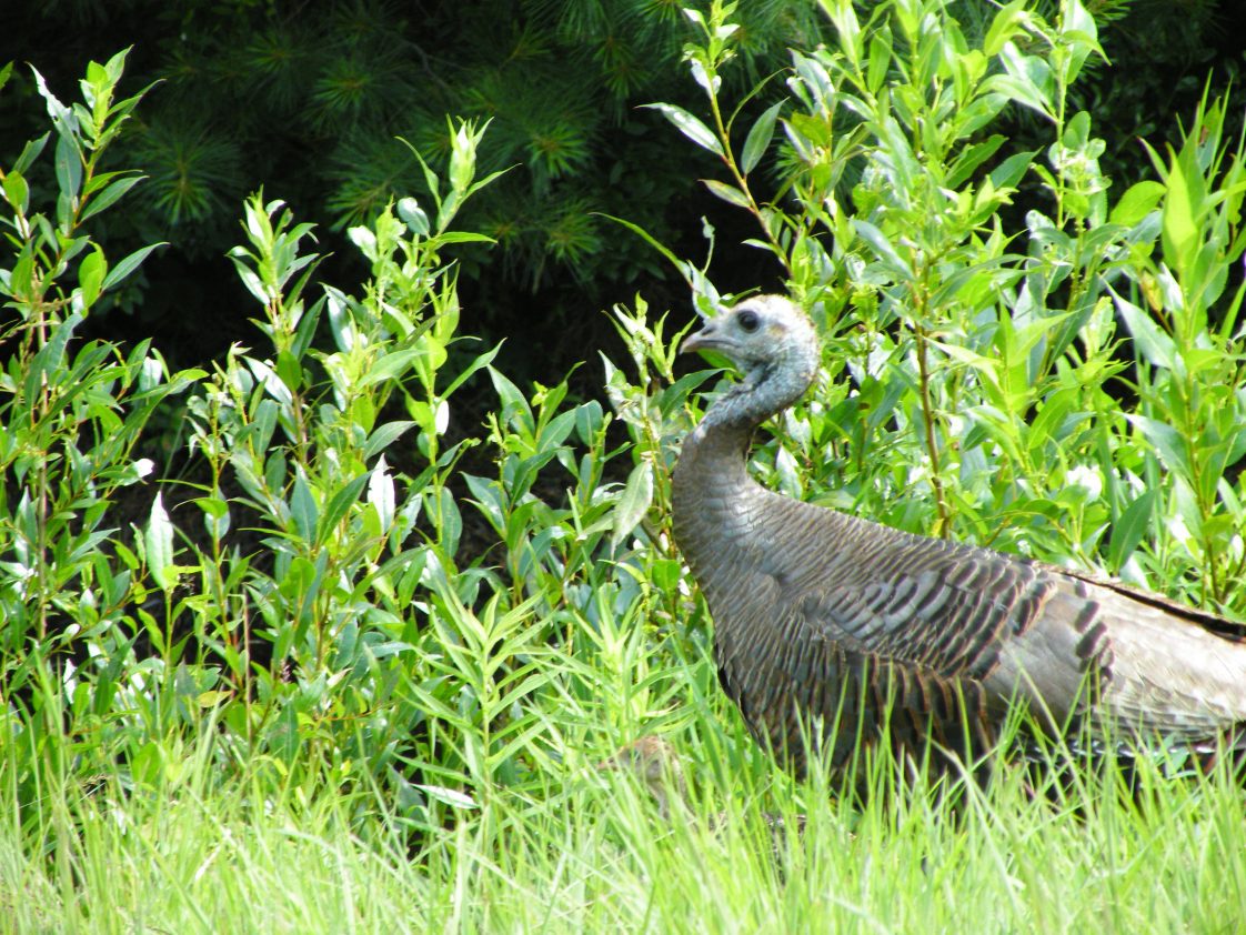 Nesting cover provides protection for nesting hens and their eggs from predation and weather. This cover must be available during the nest initiation and incubation period from April to June. Although turkey’s nest in many different vegetation types, nesting hens are most successful and often select cover that is 18 to 36 inches tall and is adjacent to a structure that provides horizontal and overhead protection, such as the base of a tree or shrub.