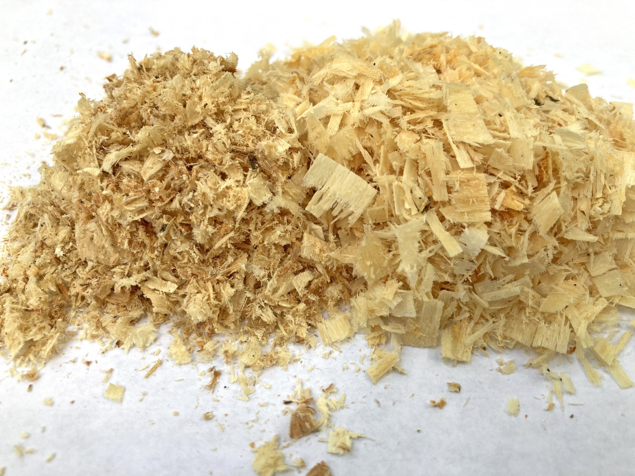 - Figure 7. Wood components from a dull chain will be a fine sawdust (left). A sharp chain will have wood shavings (right).