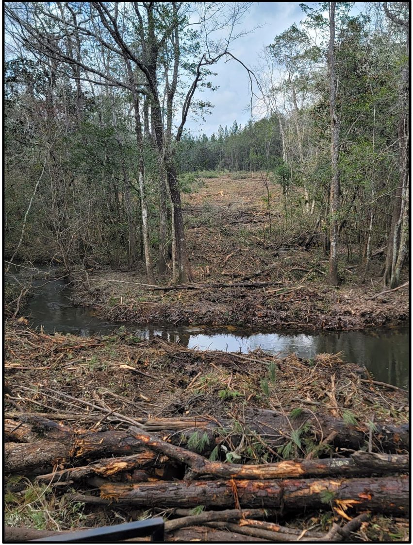 - Figure 12. Skid trail log crossing. Correct: Skidder was able to move wood across the stream with no erosion issues. (Photo credit: Jason Harrell, PLM Logger).