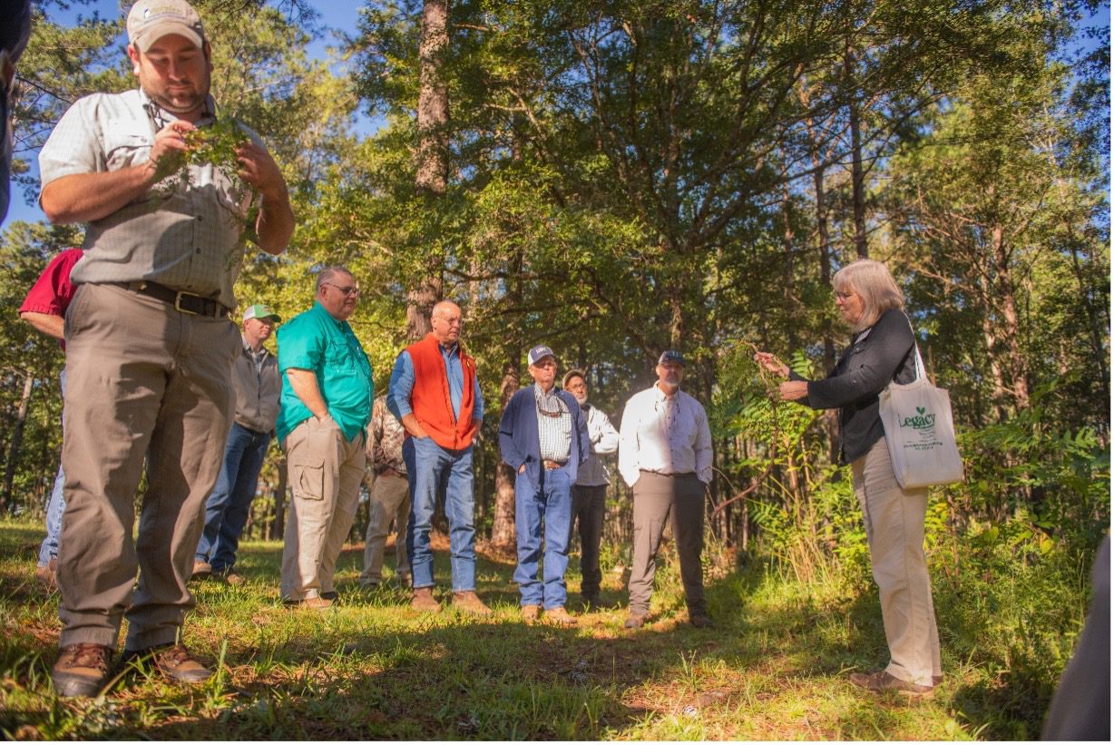 - Nancy Loewenstein teaching loggers and foresters on invasive plant identification at a field demonstration PLM CFE workshop in 2021.
