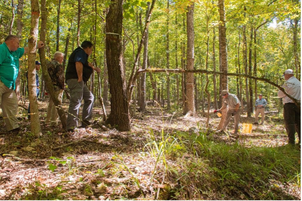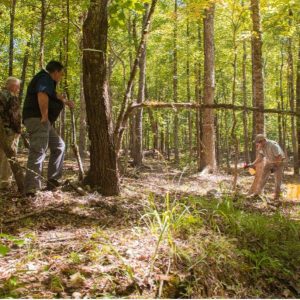 - Drew Metzler demonstrating and discussing forest stand improvement to loggers and foresters and at a PLM CFE workshop in 2021.
