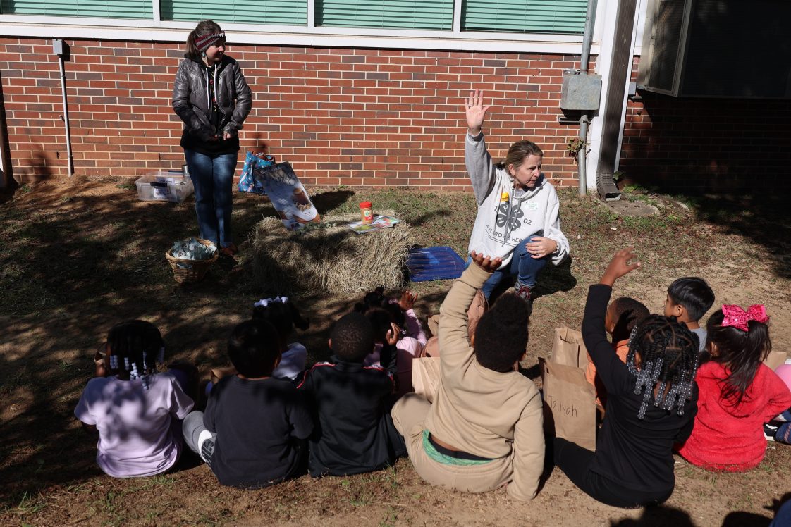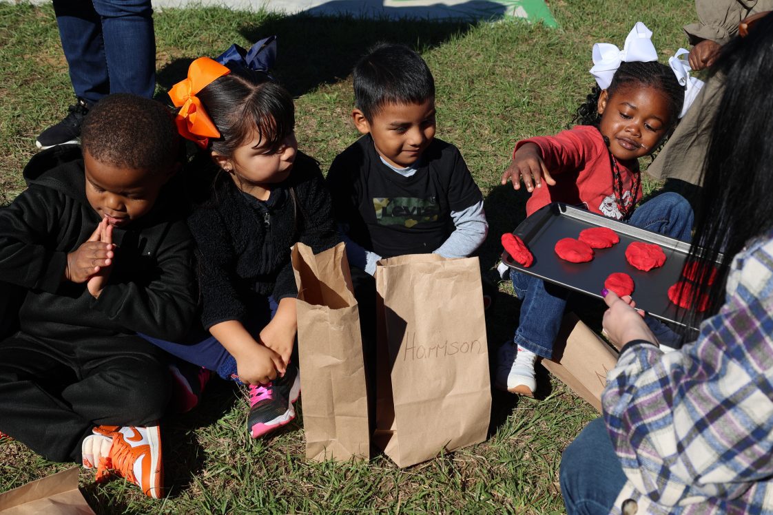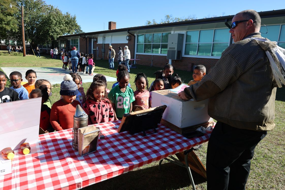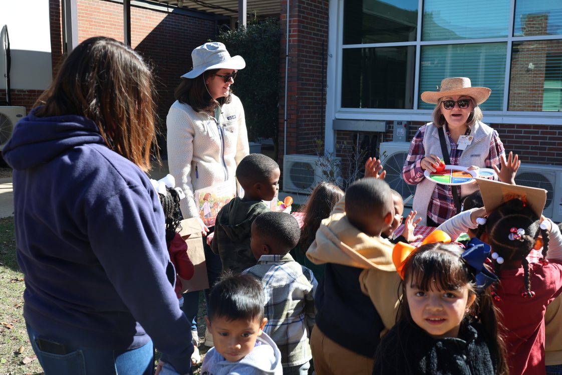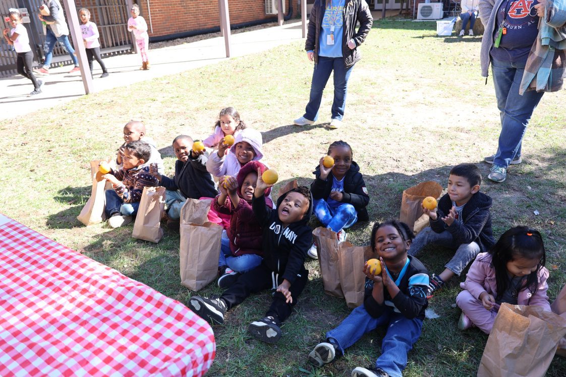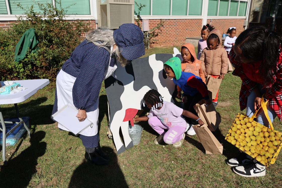 Prekindergarten students at Eufaula Primary School stepped into the pages of “Right This Very Minute: A Table-to-Farm Book About Food” during a recent farmer’s walk event. The annual program — organized by the Alabama Cooperative Extension System’s Barbour County office and Supplemental Nutrition Assistance Program-Education (SNAP-Ed) agent Michelle Puckett — teaches young learners about the journey of food from farm to table.