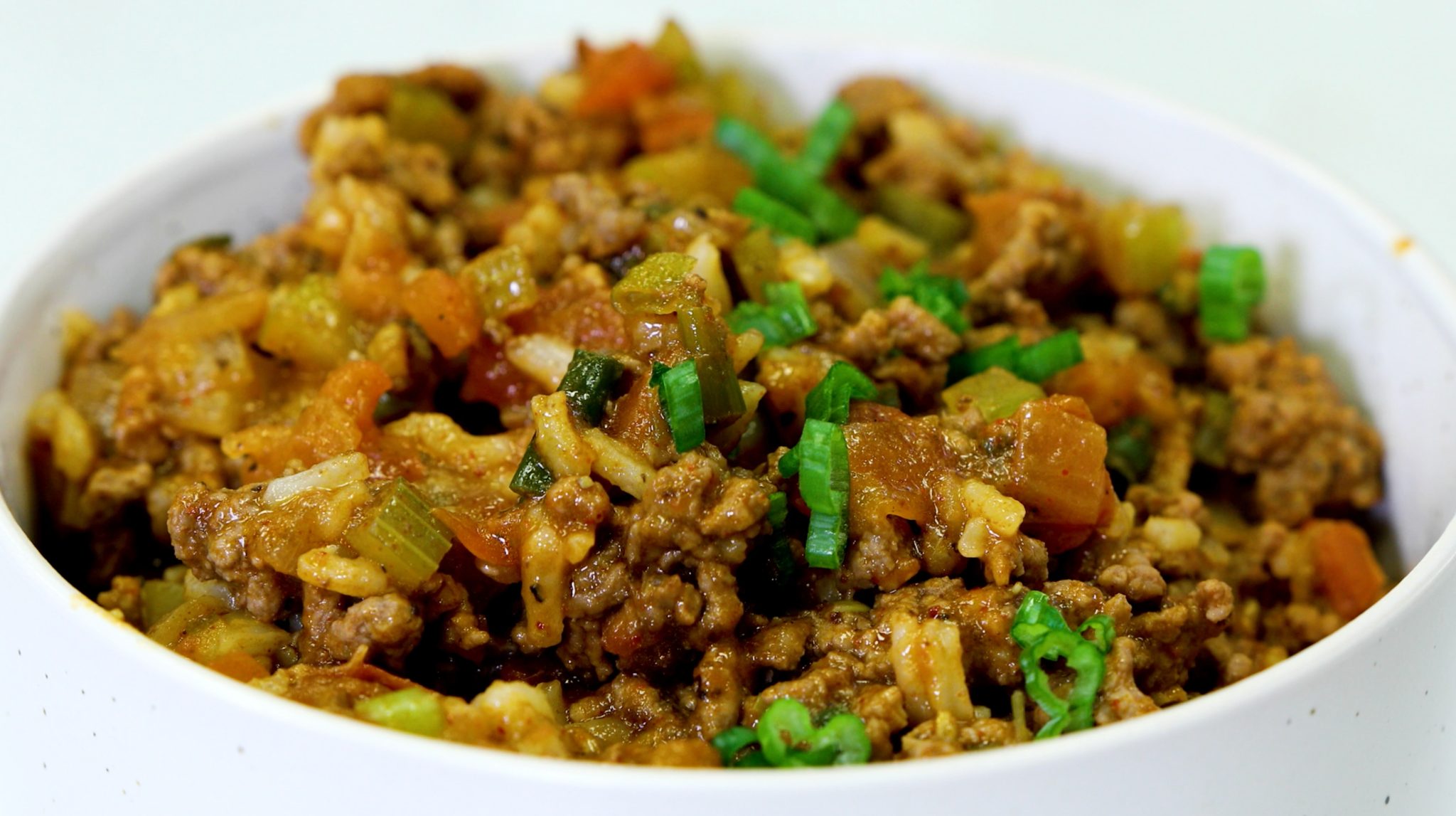- Over medium heat, combine ground beef, celery, onion, and green onion in skillet. Cook until meat is brown. Drain fat and return to skillet.
