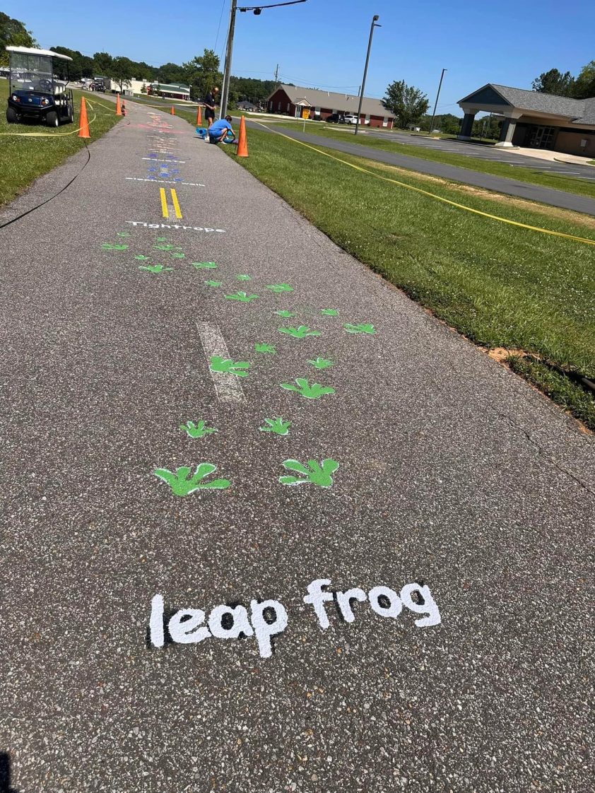 Nineteen communities across Alabama are installing new areas to encourage children to engage in daily movement in a fun and engaging way. In these areas, children use their entire bodies to walk a brightly painted sensory path. On this path, they can leap like a frog, walk a tightrope, crawl like a crab, march like ants or take a moment to relax like a tree.