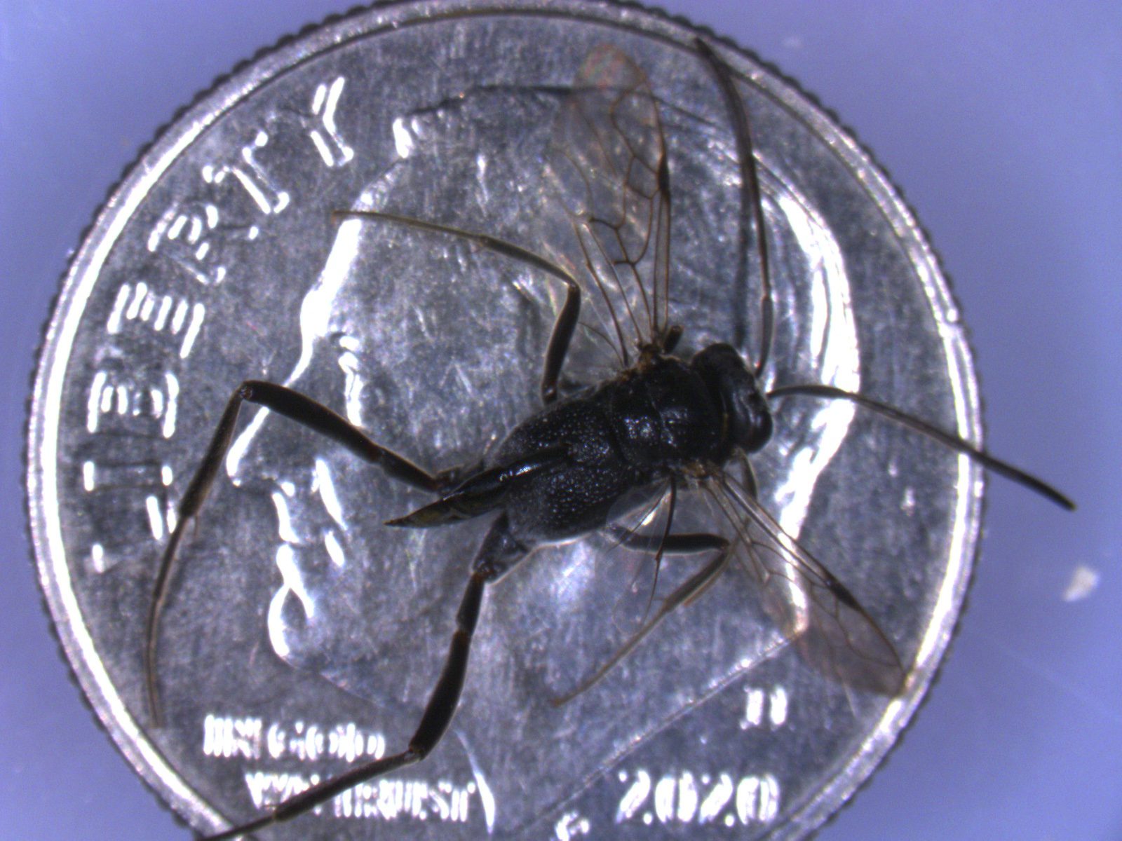 - Figure 5. An E. appendigaster wasp waves her abdomen in a flaglike fashion. (Photo credit: Dani Barcha, UGA, Bugwood)