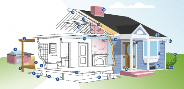 | 7. Weep hole | 17. Under floor | 27. Shrubs and trees |