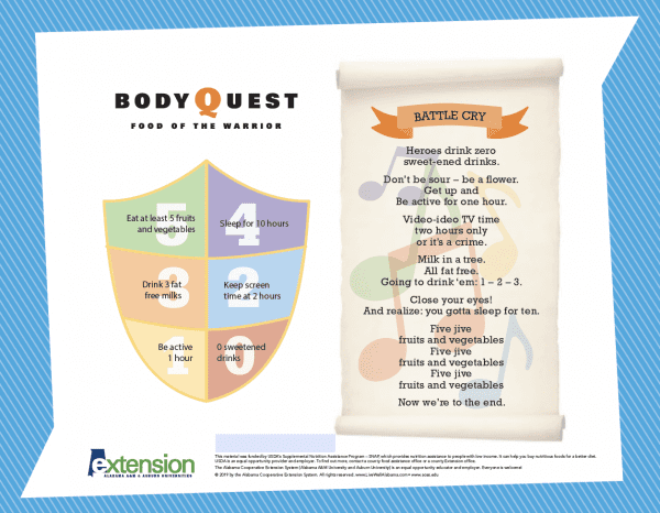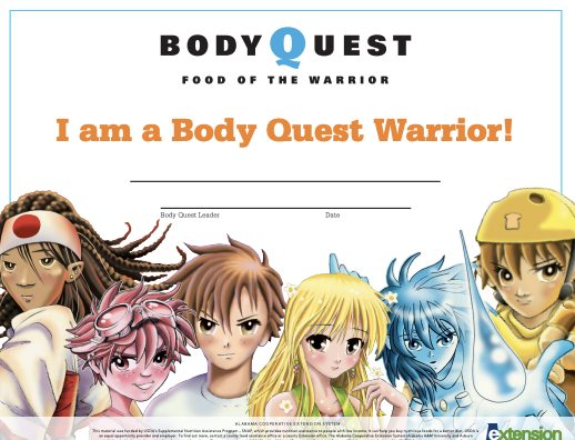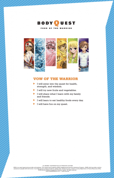 A group of six Body Quest Warriors — a group of animated characters designed by Alabama SNAP-Ed at Auburn University — are leading the charge to teach students about the power of making good food choices.
